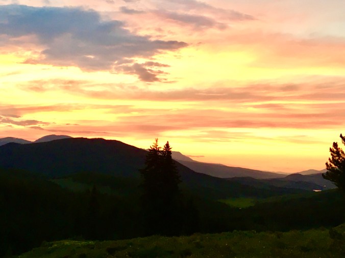 In Genesis, God flooded the earth. After the waters receded, he showed Noah a rainbow and promised He would never cover the earth in water again. As we hiked out this morning, there was a light drizzle, due to the fact we were hiking in the clouds. The sunrise was spectacular once again but what truly caught my eye was, not one, but double rainbows above the trees! What a welcome sight from all the rain we have experienced in the past few days.