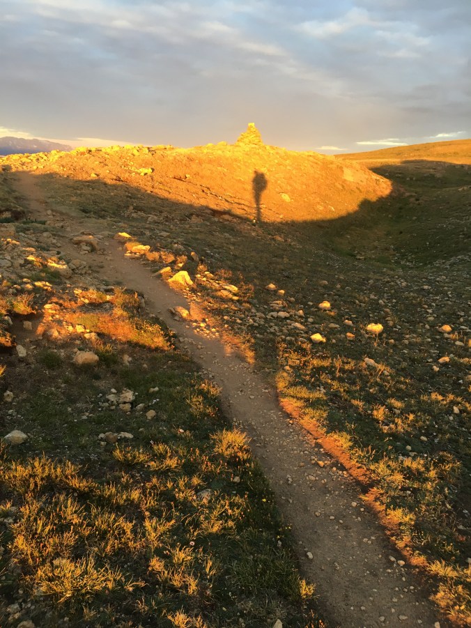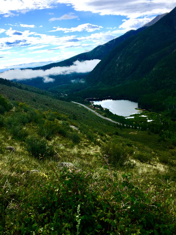 So today was a mixed bag. The weather report said 70% showers and we were ready for whatever nature was ready to give us. We hurried down the mountain to a trailhead and found some asphalt to dry our gear out. As we headed out, the clouds started moving in. They looked so whimsical at first. Almost like the Holy Spirit floating above. As we looked over a small lake, I was thinking what do those weather forecasters know anyhow?