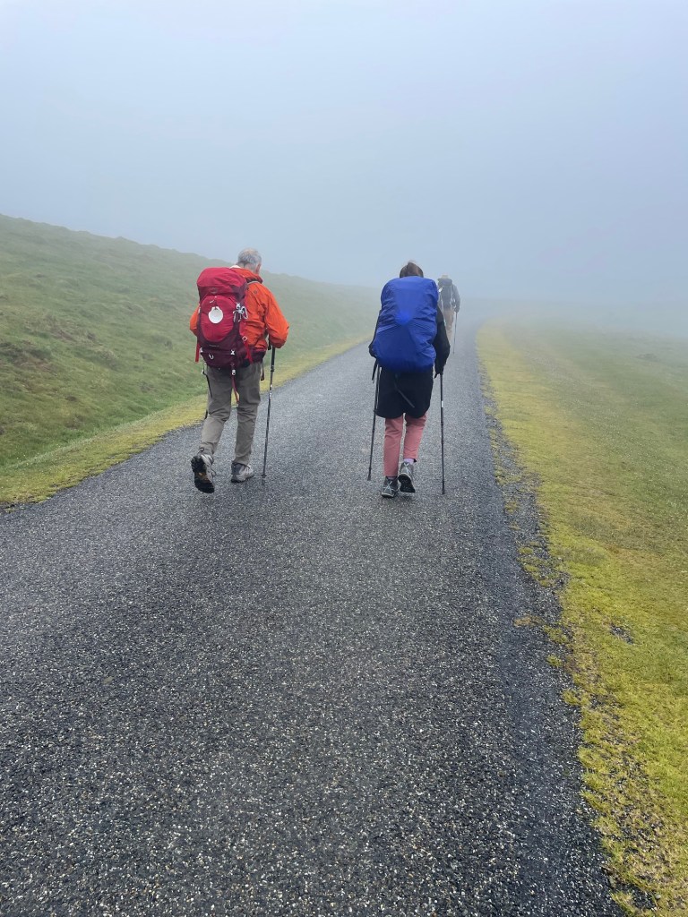 As we were heading across the plains, an electrical storm was my biggest concern. The lightening, at first was miles away. But as we walked, it was as if we were headed directly into the eye of the storm. The thunder was overhead and the lightening wasn’t striking straight down as it was before, but horizontal across the sky. So, the question is, umbrella or no umbrella? Walking Sticks or no poles? My hair wasn’t standing up so I felt fairly safe but there was some rumbling among the COP’s.
