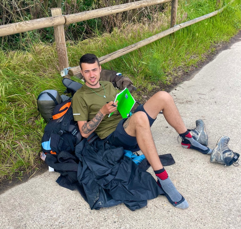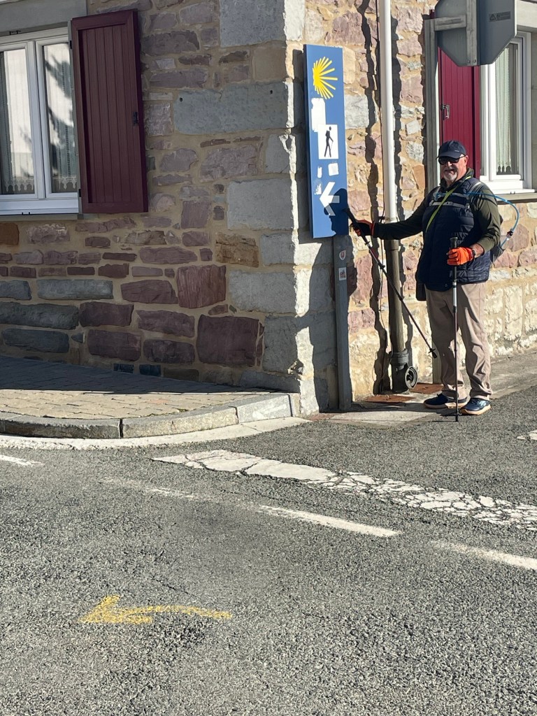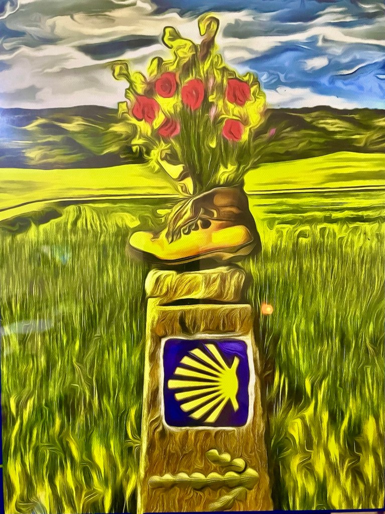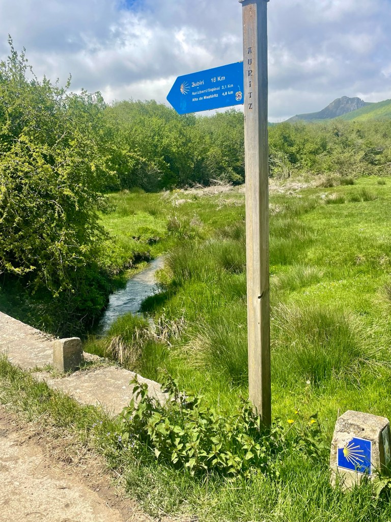Once on top, we followed the widest trail I’ve seen on the Camino thus far. It was twice the size of a Forest Road with huge rock arrows on the ground. Someone wrote Alexa in rocks and as I looked closer, it was a memorial for a life lost much too young. I’ve noticed that quite a few Pilgrims are processing grief of some sorts. It’s poignant and makes me reflect on my many losses.