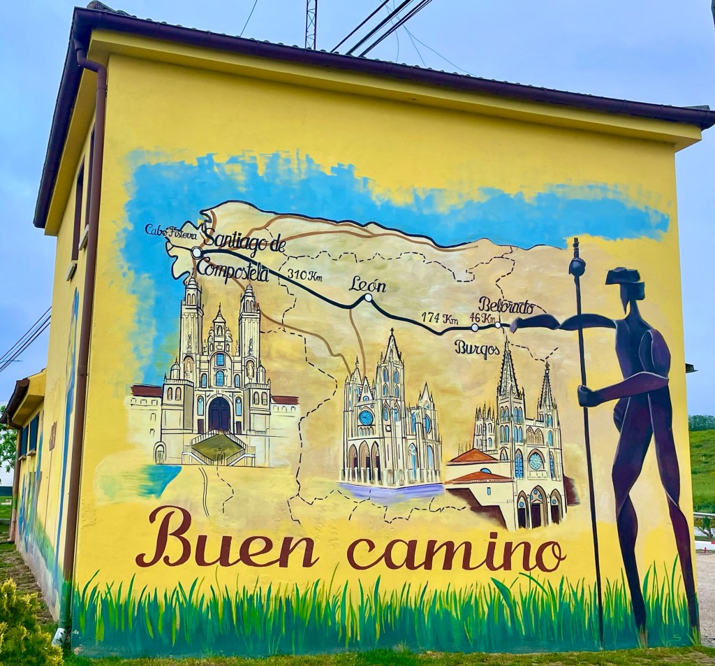 Belarado has beautifully painted murals on just about any blank wall. Artwork everywhere we looked. Such incredible tributes that honor the thousands of pilgrims which pass by annually.