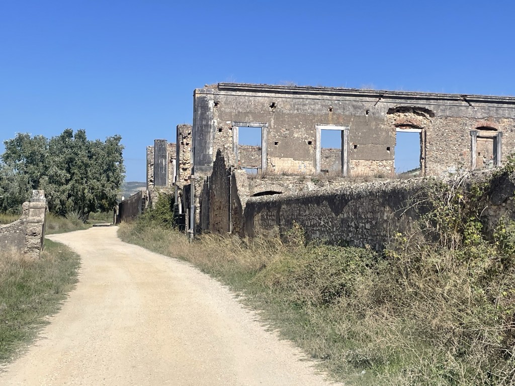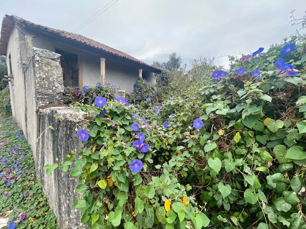 We came off the trail and walk through Soreio, which almost seems abandoned. There are homes that have been taken over by Morning Glory’s which encompass the roof, walls and ground.