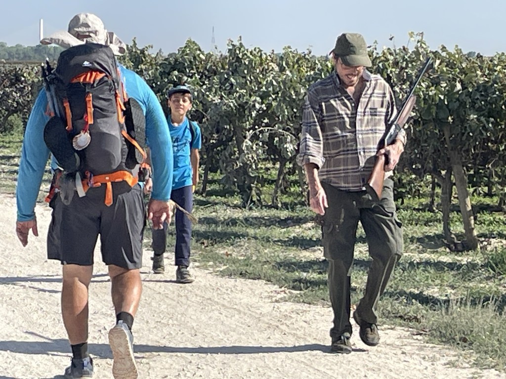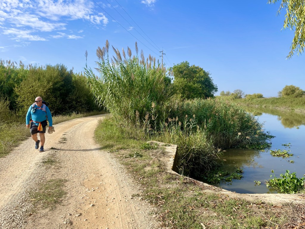The walk today was the best we’ve had. The route was well marked and it started out flat. This gives our legs a chance to wake-up. George has been keeping a great pace. He’s starting to get his trail legs and actually smiling again. The first 7-10 days are always the hardest but once you get into a rhythm, what a difference that makes.